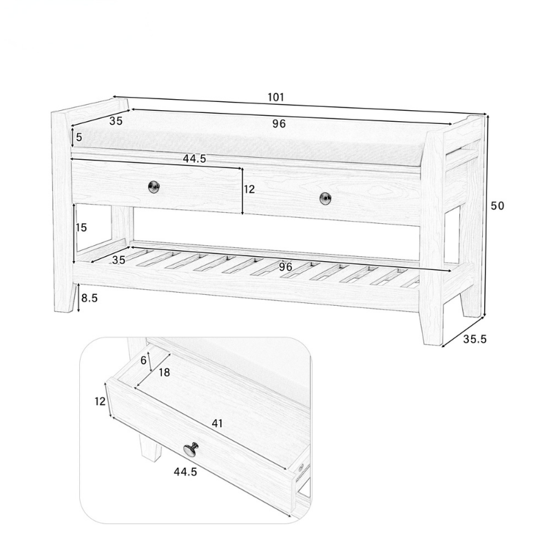 | Dimensions | Longueur : 101 cm x Largeur : 35.5 cm x Hauteur : 50 cm |